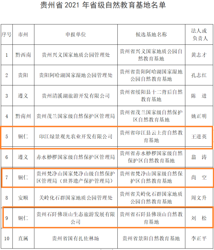 贵州省林业产业联合会、贵州省林学会及贵州省野生动植物保护协会关于2021年省级自然教育基地名单公示