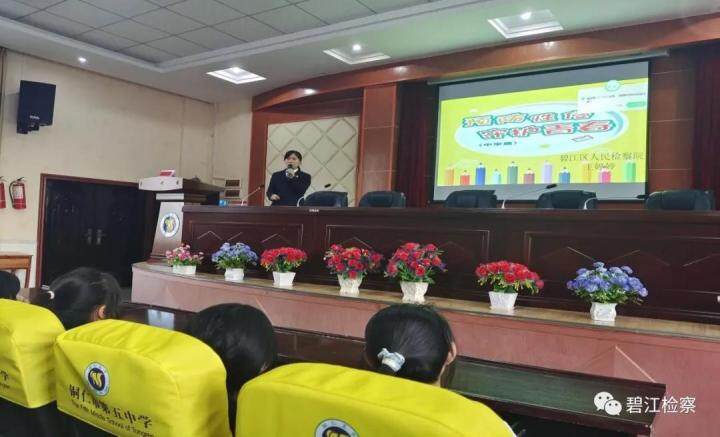 近日,由碧江区人民检察院与碧江区妇联联合组织的法治进校园巡讲团走进铜仁市第五中学,为200余名女同学上了一堂以“预防性侵,守护青春”为主题的法治课。