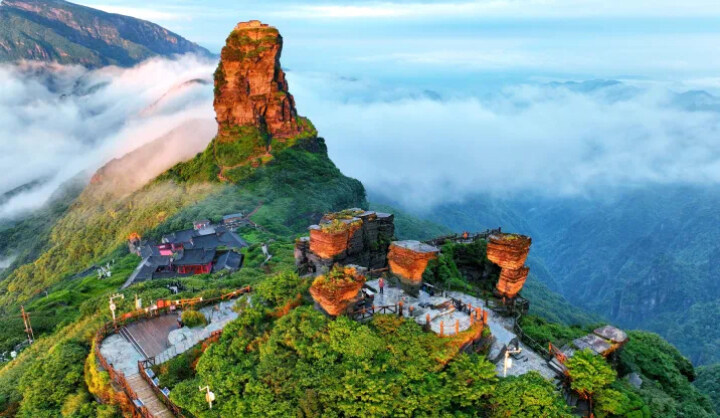 梵净山不仅是自然珍宝,更是铜仁生态旅游的核心IP。这座海拔2494米的武陵山脉主峰,历经14亿年地质演化,在广袤喀斯特地貌包围中塑造出全球独一无二的“变质岩孤岛”。