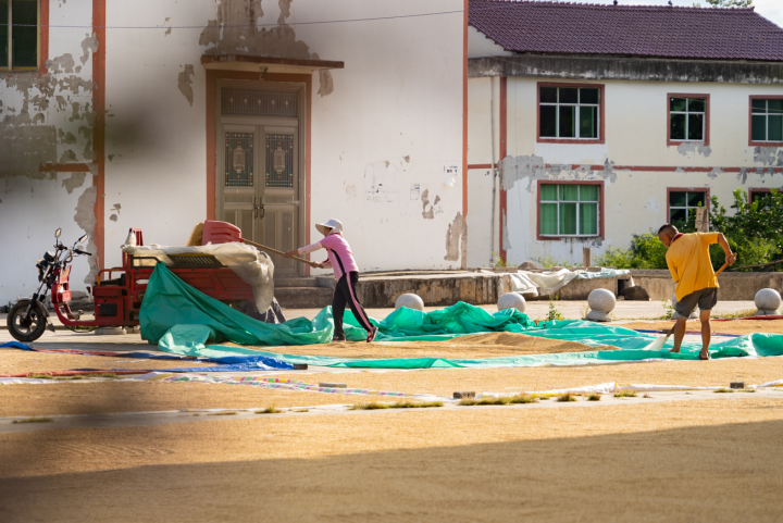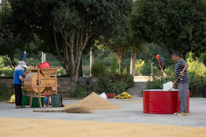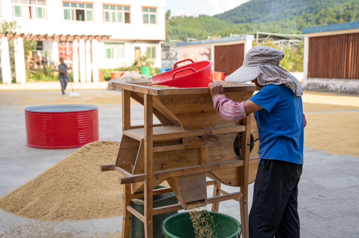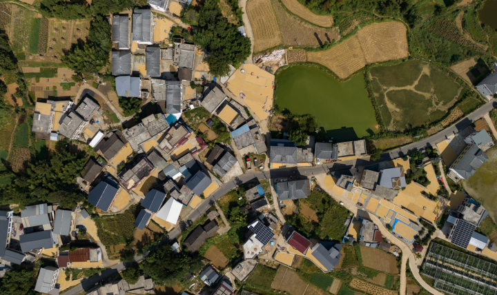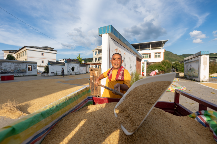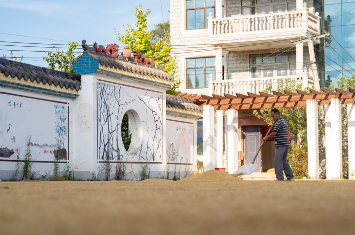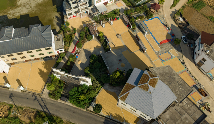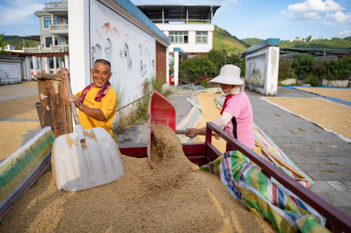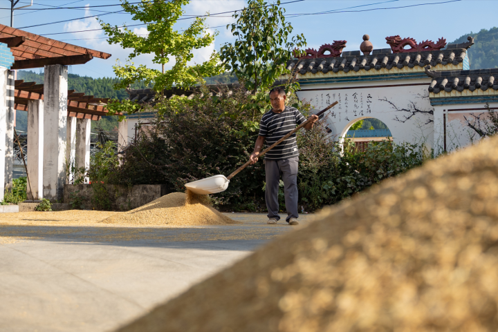 连日来,万山区鱼塘乡鱼塘村村民抢抓晴好天气,在房前屋后忙着晾晒水稻、玉米等农作物,呈现出美丽的晒秋图景。(