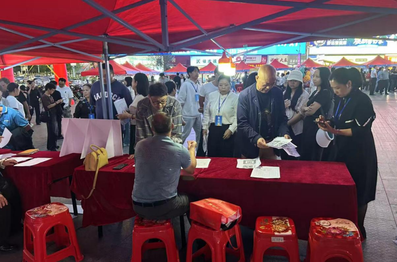 10月17日晚,由铜仁市人力资源和社会保障局主办的“职引未来 筑梦青春”高校毕业生秋季专场招聘会在铜仁中南门古城西门小广场举行。活动以线下招聘结合线上直播的创新形式,为离校未就业高校毕业生与用人单位搭建精准对接桥梁,切实落实人力资源社会保障部2025年全国公共就业服务专项活动要求。