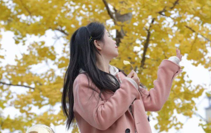 让金黄的叶片落在掌心