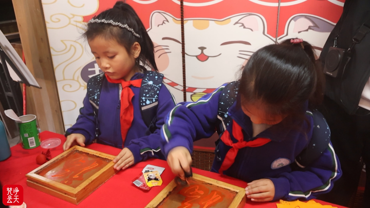 活动伊始,丰富多彩的实践体验便点燃了师生们的热情。趣味十足的童年互动游戏让大家在欢声笑语中重温纯真与快乐,而朱砂拓印体验则成为一堂生动的传统文化课。在专业老师的指导下,同学们亲手操作拓印工具,将朱砂文化元素清晰地呈现在纸页上。在一描一印、一拓一按之间,大家不仅感受到传统技艺的独特魅力,更深刻体会到匠心精神的内涵,进一步坚定了传承和弘扬中华优秀传统文化的信念。