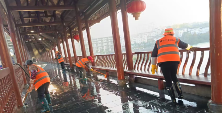 市政设施保洁是城市文明的“脸面”,玉屏始终将其放在城市治理的突出位置,由城管部门统筹调度,环卫中心组建专项保洁队伍,采用“机械清扫+人工精细化保洁”模式,对主次干道、背街小巷、公园广场等区域全方位清扫。