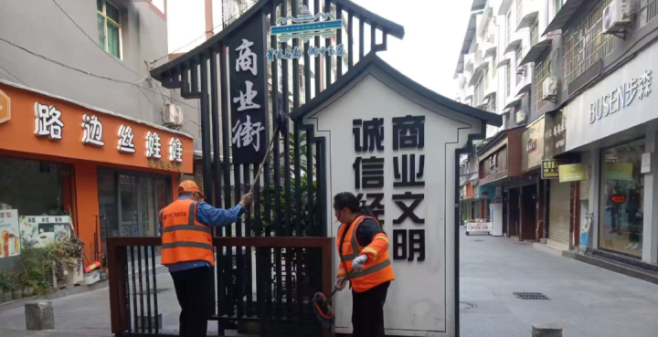 同时,针对果皮箱、公交站台、垃圾中转站等高频接触的市政设施,保洁人员采用“冲洗+擦拭+消毒”的组合方式,定期进行深度清洁,确保设施表面干净整洁、无异味残留。在背街小巷,保洁队伍更是加大清扫频次,通过“机械清扫+人工捡拾”的模式,有效清理积存垃圾和散落杂物,让曾经的“隐秘角落”也焕发出清爽面貌。如今走在玉屏街头,路面洁净如新,设施清爽整洁,清新的环境让人心旷神怡。