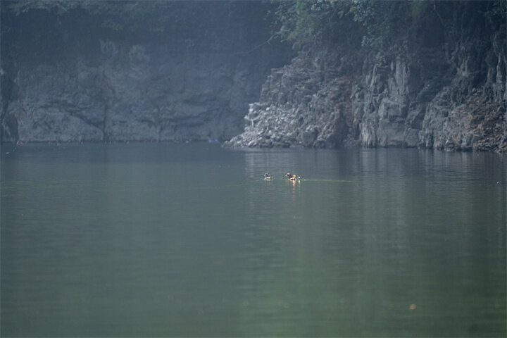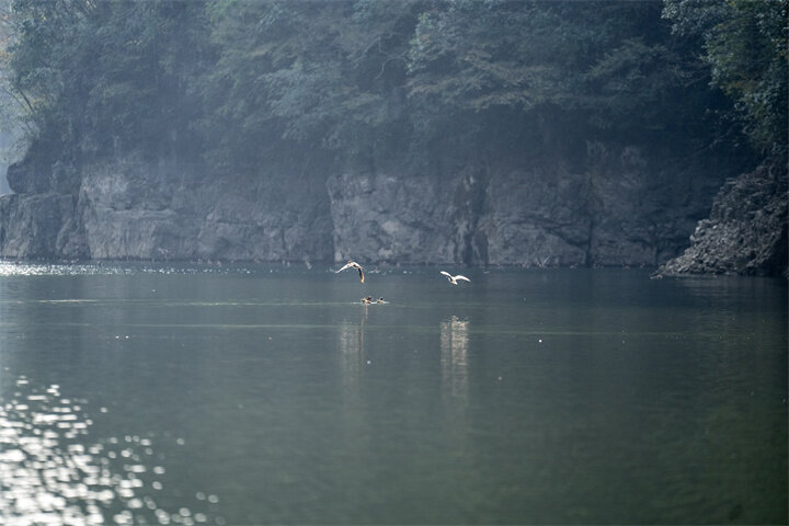 “这里常年平均气温16.5℃,周边林地绵延8000多亩,两岸悬崖峭壁上天然石洞众多,为鸳鸯提供了理想的栖息与繁殖环境。”石阡鸳鸯湖国家湿地公园管理局副局长黄秀谷介绍,这里是全国最大的野生鸳鸯栖息地之一,亦是贵州省候鸟迁徙通道重点保护区域。园区最多时有鸳鸯1500余只,上千只鸳鸯更是将这里当作真正的家园,每年9月至次年的3月都留在此处越冬。