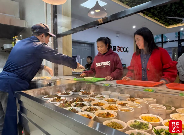 据了解,环北街道板桥社区老年群体与双职工家庭占比高,“做饭难、吃饭愁”曾是民生痛点。今年以来,社区党组织牵头搭建“民政支持+市场经营+多方监督”机制,整合资源打造标准化食堂,让居民在家门口就能享受到便捷、实惠、营养的餐饮服务。