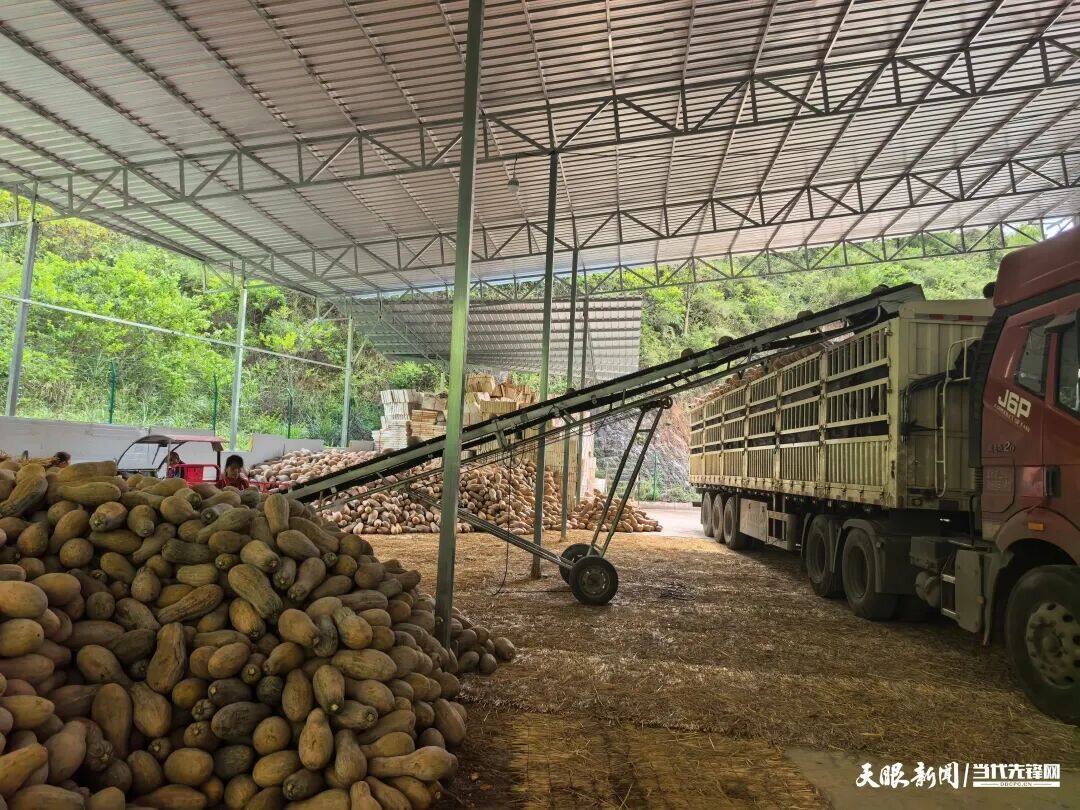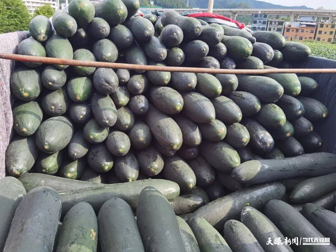 新民坝区基地的成长轨迹正是政策效能的生动注脚。这片曾以传统种植为主的坝区,2022年开始,主要种植黑皮冬瓜、南瓜等,采取错峰上市策略,延迟种植期,价格从每斤4角涨至7角,亩均增收4800元。经济效益显著提高,已成为印江直供大湾区的“菜篮子”基地之一。此外,基地还借助“农超对接”模式直供广东,依托冷库延长销售周期。