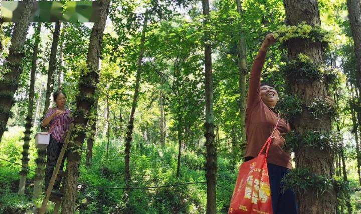 据了解,种在树上的铁皮石斛具有较强的抗逆性,不需要外加基质和营养,主要依靠吸收树皮和大树的营养就能够很好地生长,不仅可以利用林木遮阴,还不需要塑料大棚,能有效节约成本,且更加生态,品质更好。