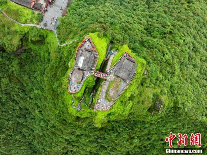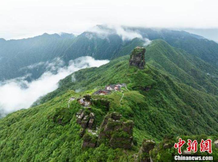 6月26日,贵州铜仁,航拍雨后梵净山青山翠绿,云雾弥漫,宛如仙境。(无人机照片)