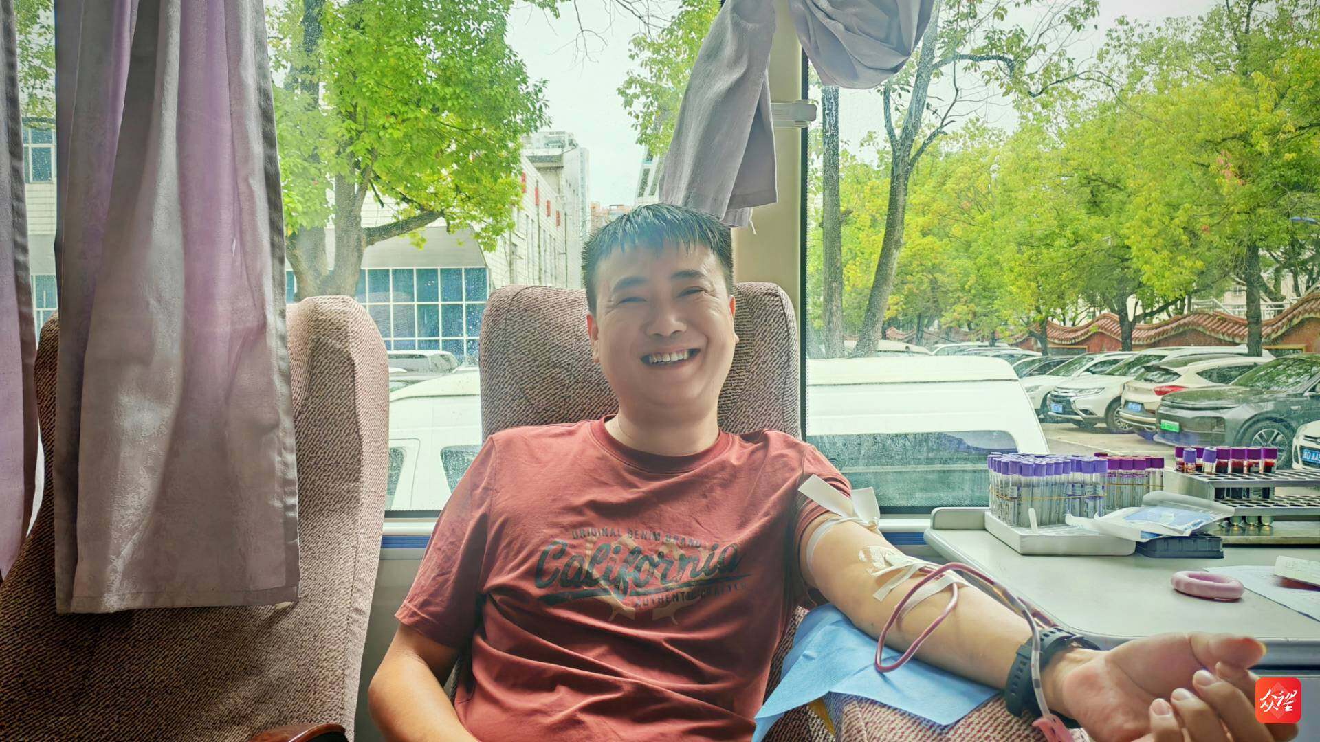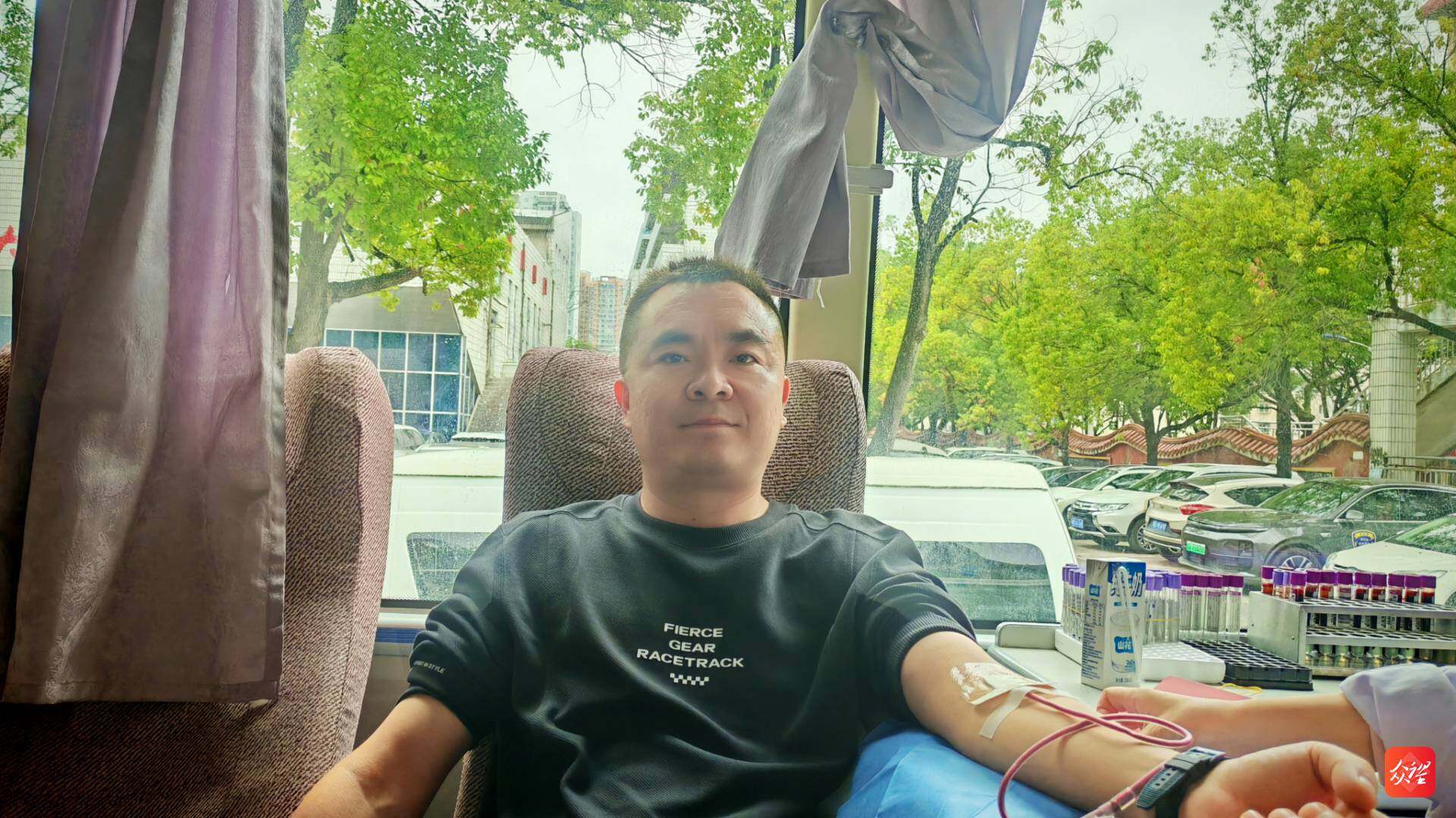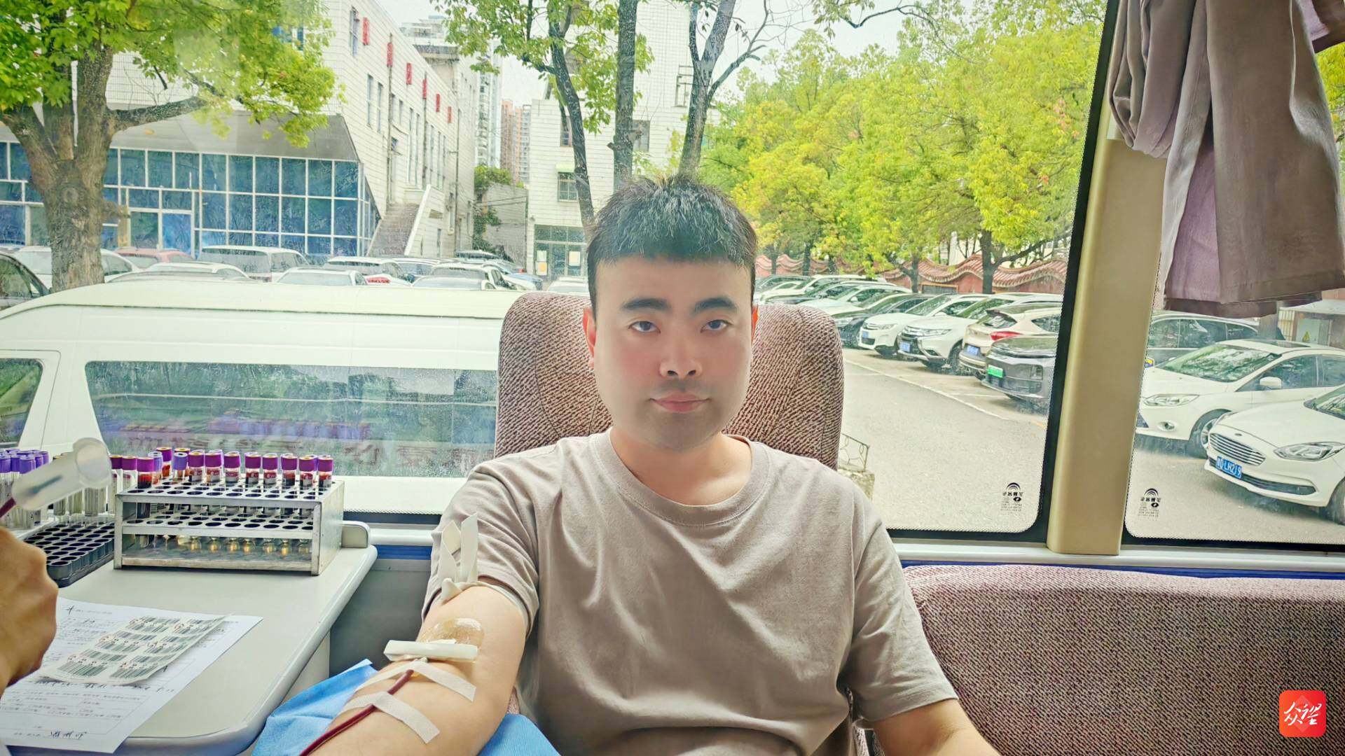 在采血车内,撸起袖子的干部职工们眼神坚定,有的看着血液缓缓流入血袋,脸上露出欣慰的笑;有的献完血后,还不忘在朋友圈分享:“今天解锁了‘热血奉献’新体验,为自己点赞!”
