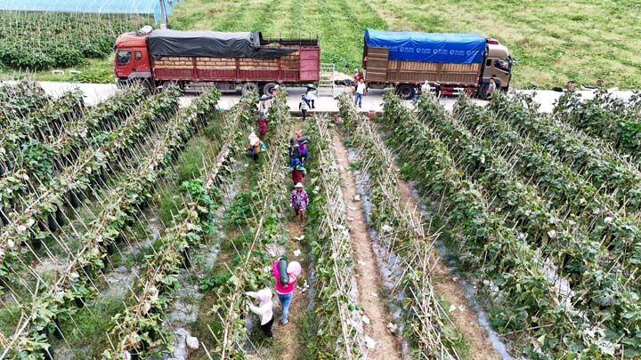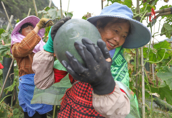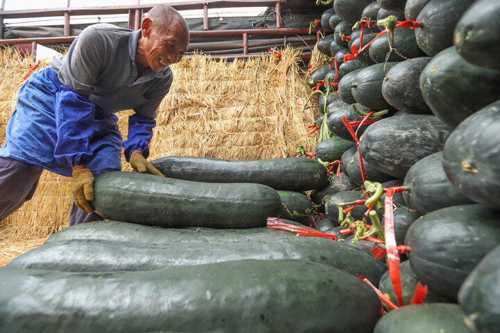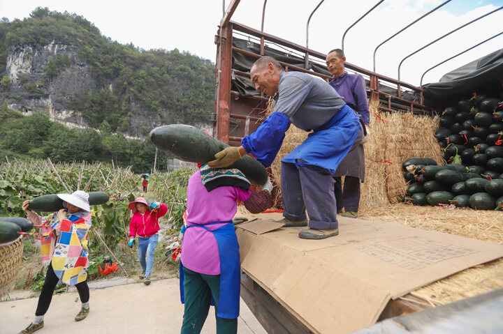 随着国庆、中秋双节临近,假日消费市场迅速升温。在印江土家族苗族自治县黑皮冬瓜迎来了丰收季。在“双节”市场的强劲需求推动下,黑皮冬瓜的价格较8月上涨了一倍,当地瓜农正紧锣密鼓地全面采收,约960万斤的冬瓜将陆续发往大湾区市场,为节日餐桌增添一抹绿色。