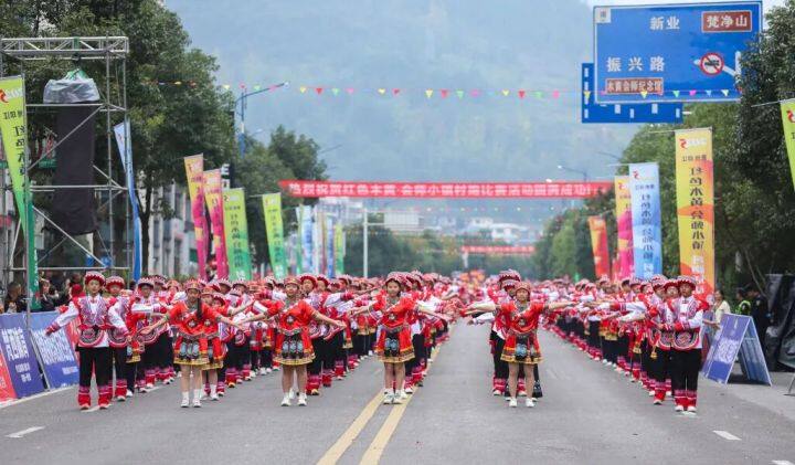 10月25日,印江自治县木黄镇迎来了一场盛况空前的群众文化巡游活动。来自该镇各村(居)的上千名群众身着盛装,以舞狮、腰鼓、花灯、唢呐等传统民俗为载体,结合特色产业展示,共同演绎了一场展示乡村文化活力与产业振兴成果的盛会。活动现场,千人摆手舞与机车表演的创意碰撞更成为亮点,为秋日的木黄镇增添了一抹热烈而多彩的色彩。
