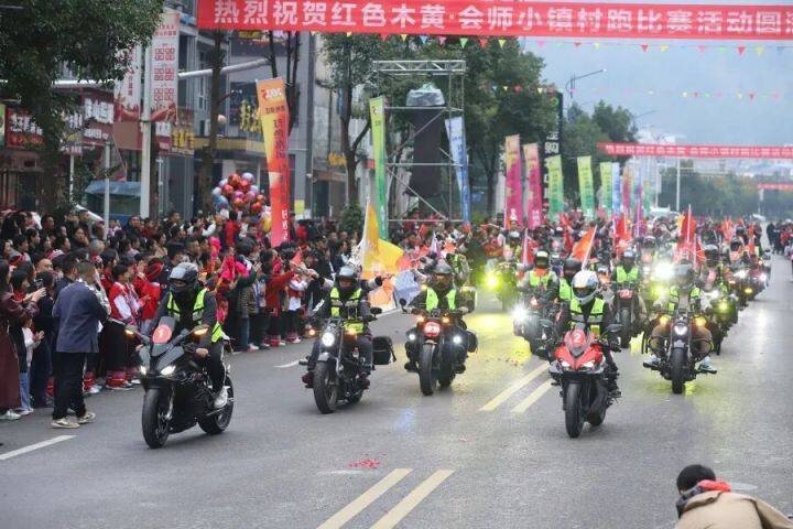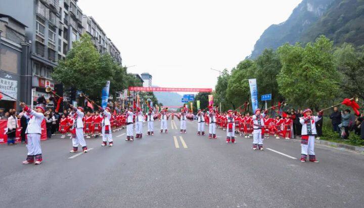 巡游开始前,一场跨越年龄与时代的开场秀点燃全场。上千名群众身着土家族传统服饰,齐跳摆手舞,动作粗犷豪放,再现土家人好客的豪情。紧随其后的是由40辆机车组成的方阵,骑手们戴着头盔、挥舞国旗,以酷炫的队形穿梭于街巷,传统舞蹈与现代机车的反差组合引得欢呼声不断。