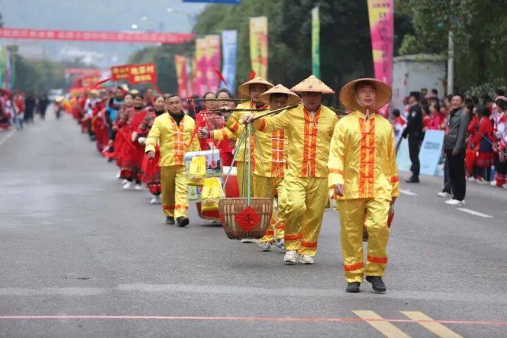 上午8时许,随着激昂的锣鼓声响起,巡游队沿主干道徐徐展开,依次从会师广场通过,各村方阵以“文化+产业”为主题,将非遗传承、红色历史与特色农产品深度融合,形成一道流动的文化长廊。