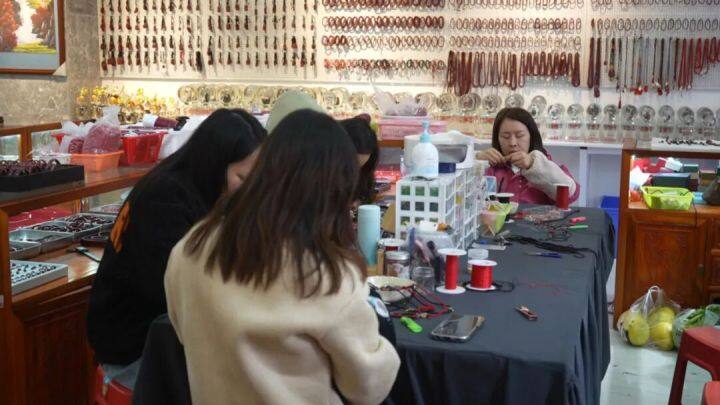 走进朱砂陈列馆生产车间,匠心巧琢的朱砂工艺品琳琅满目,有精心雕刻的各类朱砂摆件,有融合民族特色的编织挂饰,还有精致小巧的手串、项链等饰品,工人们正有条不紊地投身切割、雕刻、打磨等工序,全力赶制四季度订单。“目前1.5万件朱砂订单正加急生产,涵盖吊坠、手串、挂件等品类,将发往北京、广州、浙江、湖南及贵阳等地的线下客商、线上商户与加盟店。”朱砂陈列馆董事长谢光辉介绍。 作为朱砂产业园的核心企业,朱砂陈列馆以文化赋能产业发展,深耕朱砂压模、晶体、原石三大核心品类,打造2000余种特色产品,并构建“线下批发零售+线上直播带货”的全渠道销售模式。据统计,该企业2025年原计划朱砂生产量一万公斤,前三季度已完成全年目标的60%,结合四季度订单量测算,预计可完成原计划的90%。“为确保订单如期交付,全员加班加点满负荷生产,全力冲刺年度任务。”谢光辉说。 梵森朱砂工艺品有限公司的生产线上同样忙而有序,磨边、抛光、钻孔等工序环环相扣、高效推进。“今年我们紧扣市场潮流,将传统大漆非遗工艺融入朱砂产品设计,创新推出‘国潮系列’产品,让朱砂饰品更具年轻化、时尚化特质。”公司负责人邓俊平介绍,凭借“非遗+潮流”的创新路径,前三季度“国潮系列”产品已热销2万余件。 据悉,梵森朱砂工艺品深耕“文化+创新”发展路径,通过非遗技艺与现代审美融合构建多元产品矩阵,依托标准化生产体系与电商平台赋能,实现产业规模稳步扩大。“接下来,我们将抢抓双十一、元旦、春节等消费旺季,持续深耕订单生产与市场拓展,全力冲刺第四季度销售高峰。”邓俊平信心满满地说道。 四季度是定全年、保全局的关键冲刺期。当前,万山朱砂产业正以满弓紧弦的姿态,凭借特色产品优势与高效生产能力,全速推进年度目标达成,为万山经济社会高质量发展增添更坚实的产业支撑。(孙菁)