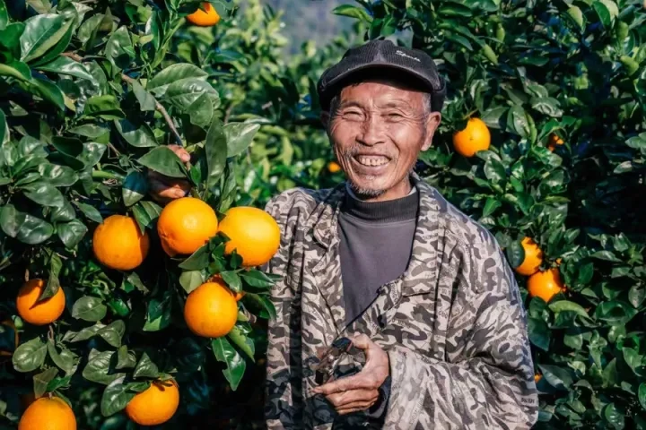脐橙挂满枝,果农笑开颜。