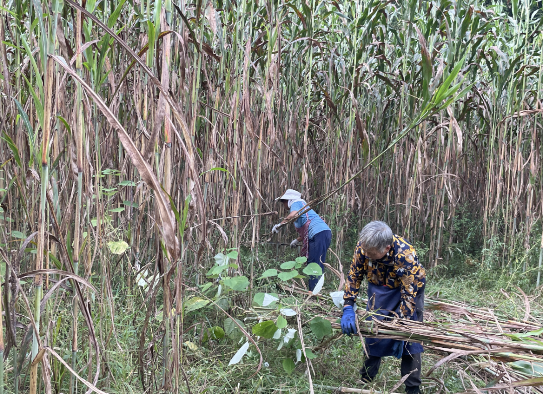 当前正值饲草收割的关键时节。近日,记者走进苦竹村饲草种植基地,只见连片的饲草长势喜人。村民们正忙着收割饲草,他们有的挥刀割草,有的负责搬运、装车,大家分工明确、配合默契。一个个勤劳的身影与翠绿的饲草交相映衬,绘出一幅动人的秋收图。