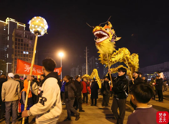 2023年1月30日晚,民间艺人在玉屏侗族自治县舞阳广场进行舞龙表演。(胡攀学 摄)