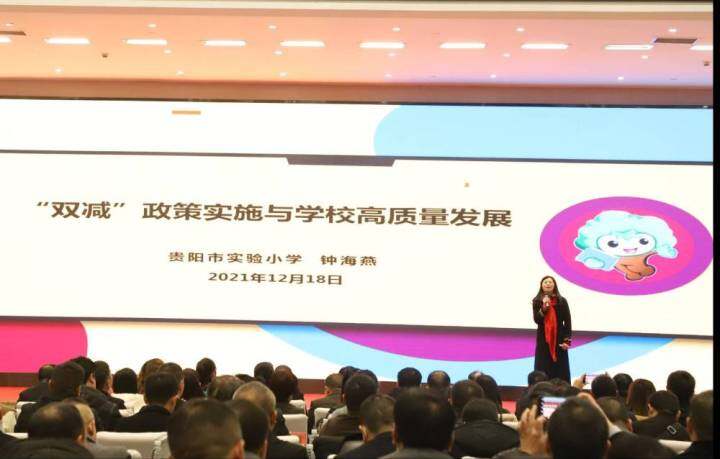 应邀出席会议的贵阳市实验小学党总支部书记、校长钟海燕在作题为《“双减”政策实施与学校高质量发展》专题讲座时,围绕“双减”政策实施是为了高质量发展这一话题,讲述了从课堂改革到怎样成为一名好校长,办好一所好学校;怎样实现学校的内涵发展,办出学校的特色。