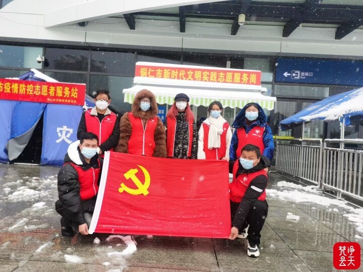 12月26日,铜仁迎来强降雪天气,气温骤降,铜仁火车站旅客依旧来来往往,为了疫情防控安全,志愿者们冒着风雪坚守在疫情防控第一线。