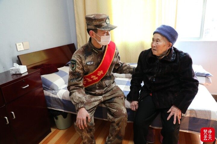 劳动卫生整理结束后,志愿者们走进老人们生活的房间里,有的为老人整理床铺,有的与老人坐在一起聊天。房间里,亲切的问候声在房间里回荡,现场温馨和谐,彰显着军民一家亲,军民鱼水情的浓浓情意。